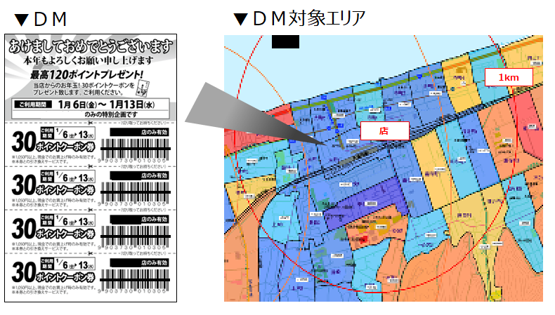 今回は、1km商圏内地区の会員を対象としたDM企画をご紹介いたします。